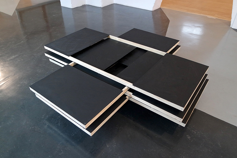 „Suprematistisches Kreuz für Leni“, Holz, Tusche, ca. 180 x 180 x 20 cm