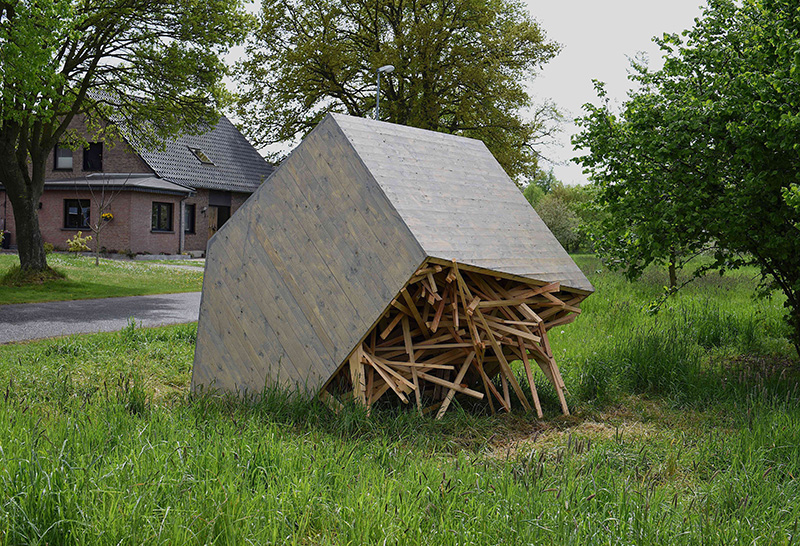 „Umgekipptes Haus“, Holz, Lasur, 300 x 300 x 300 cm, 5.2021